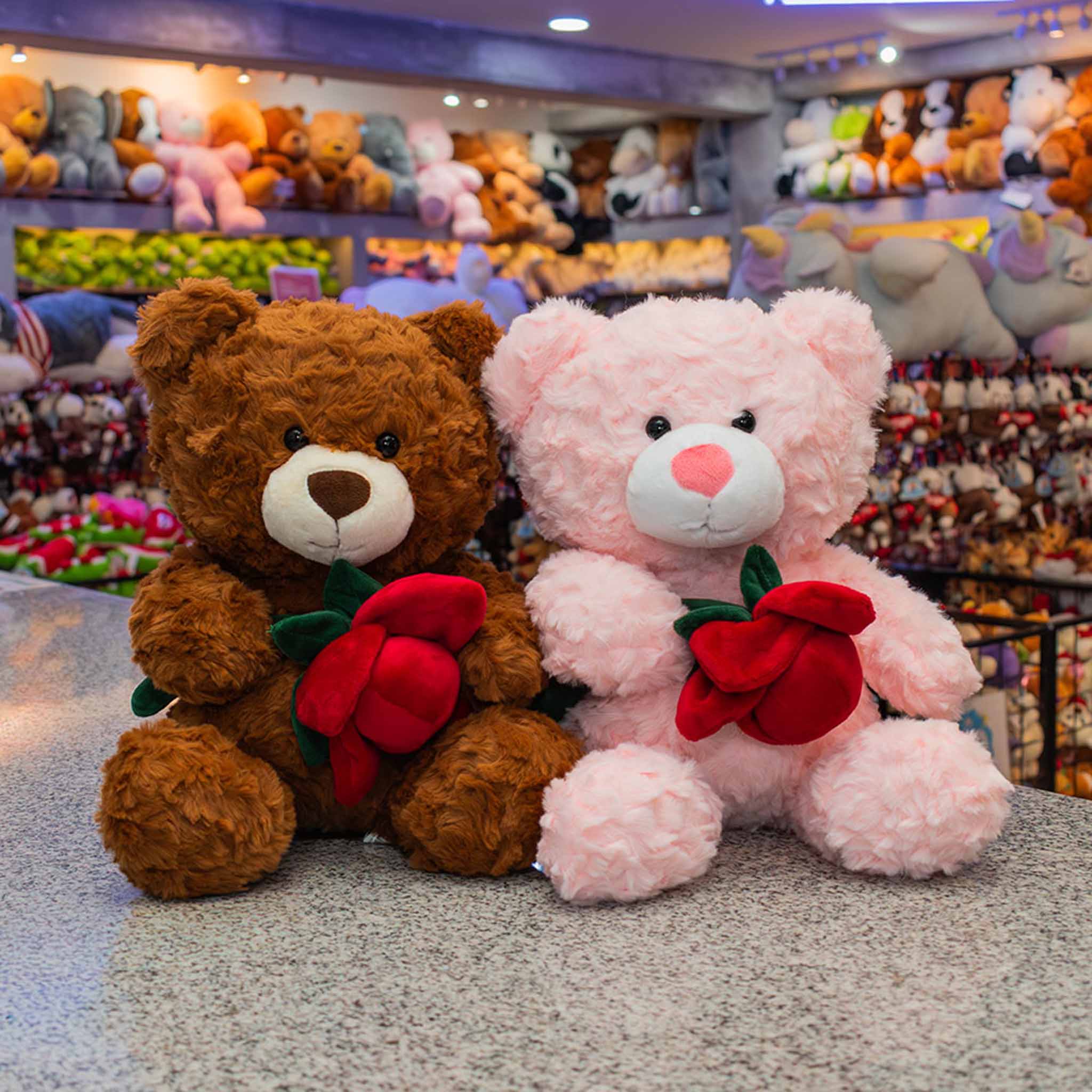 Set de 2 piezas Osos de peluche con rosas 30 cm