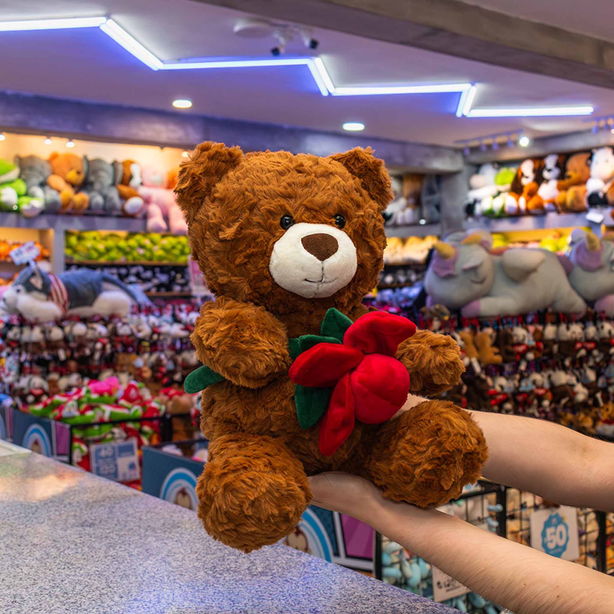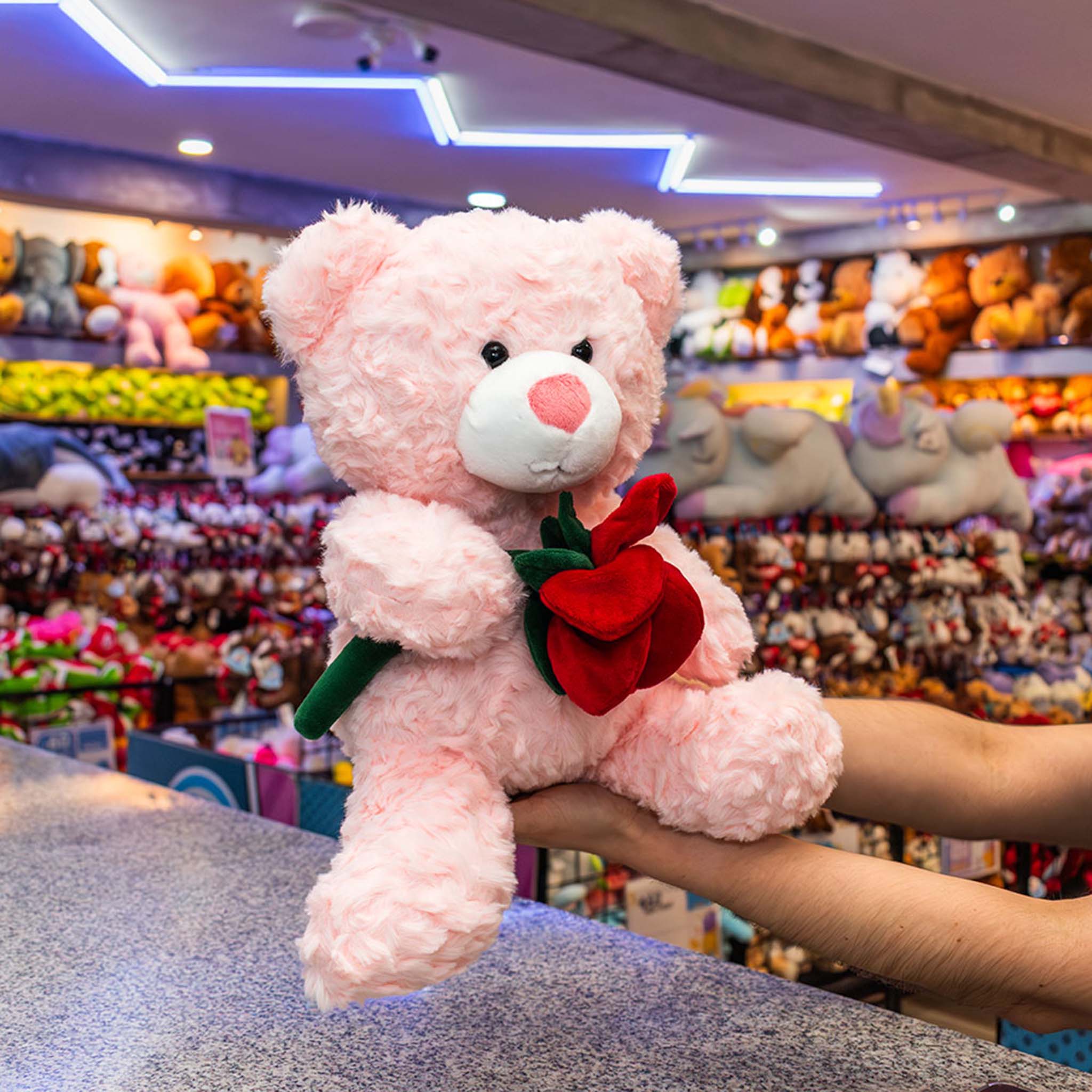 Nuestro oso de peluche con flores , es el regalo perfecto para expresar cariño en cualquier ocasión especial. Está elaborado con peluche suave y de alta calidad, ofreciendo una textura agradable y un diseño tierno que enamora. Peluches para San Valentín