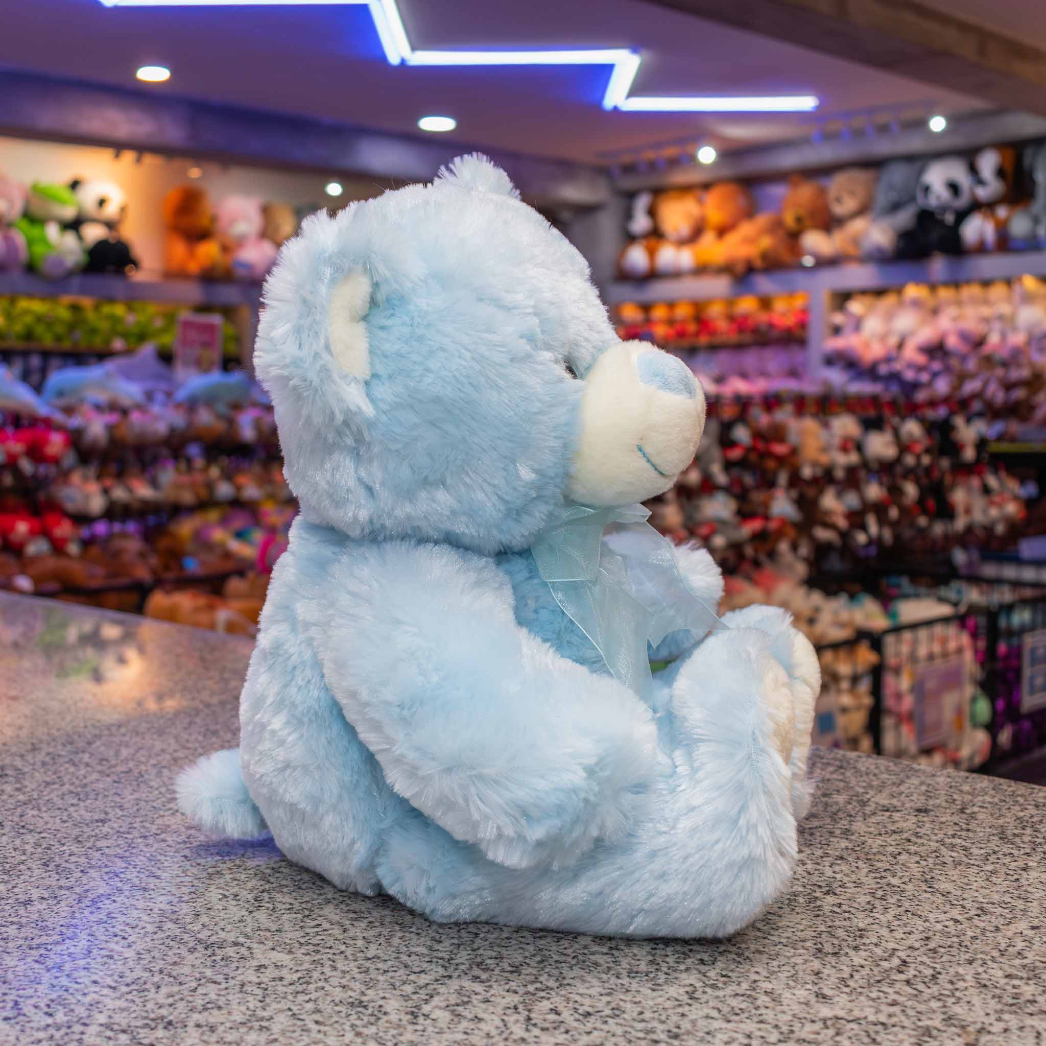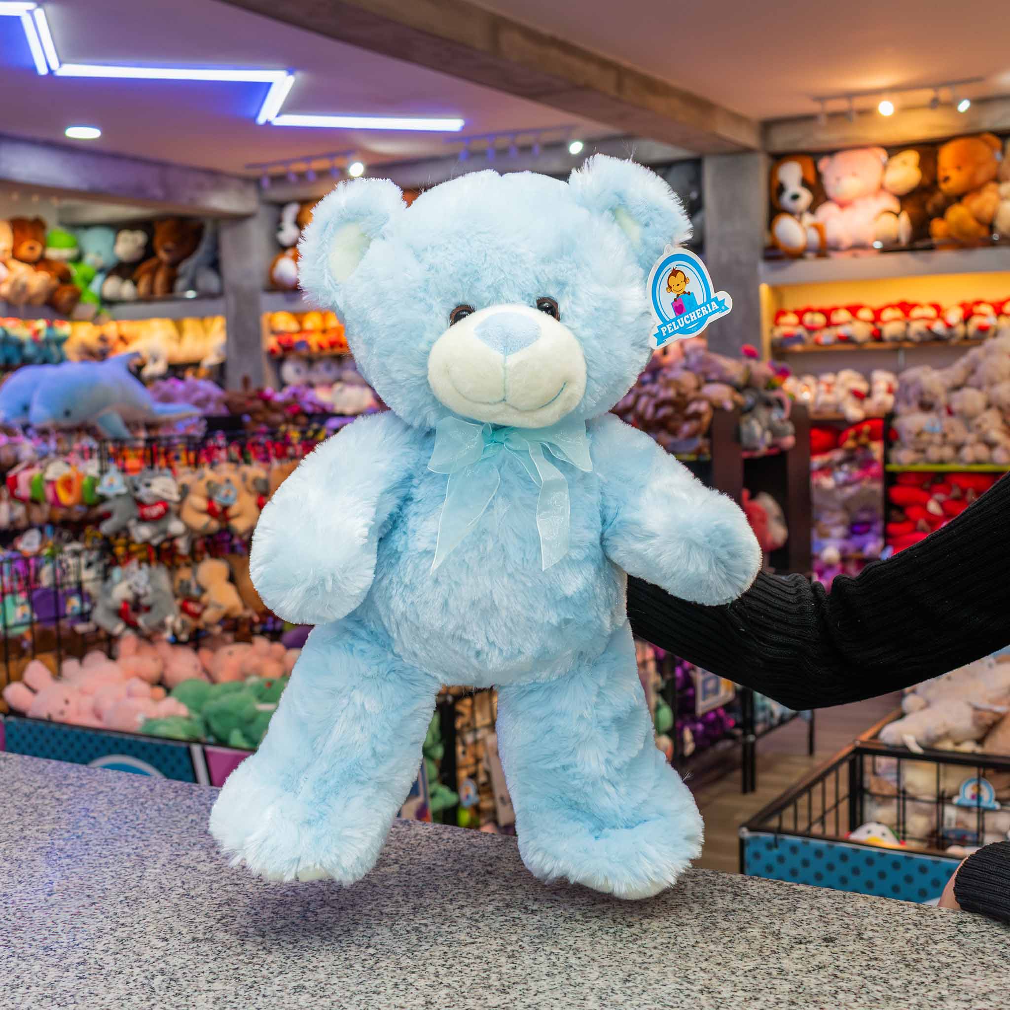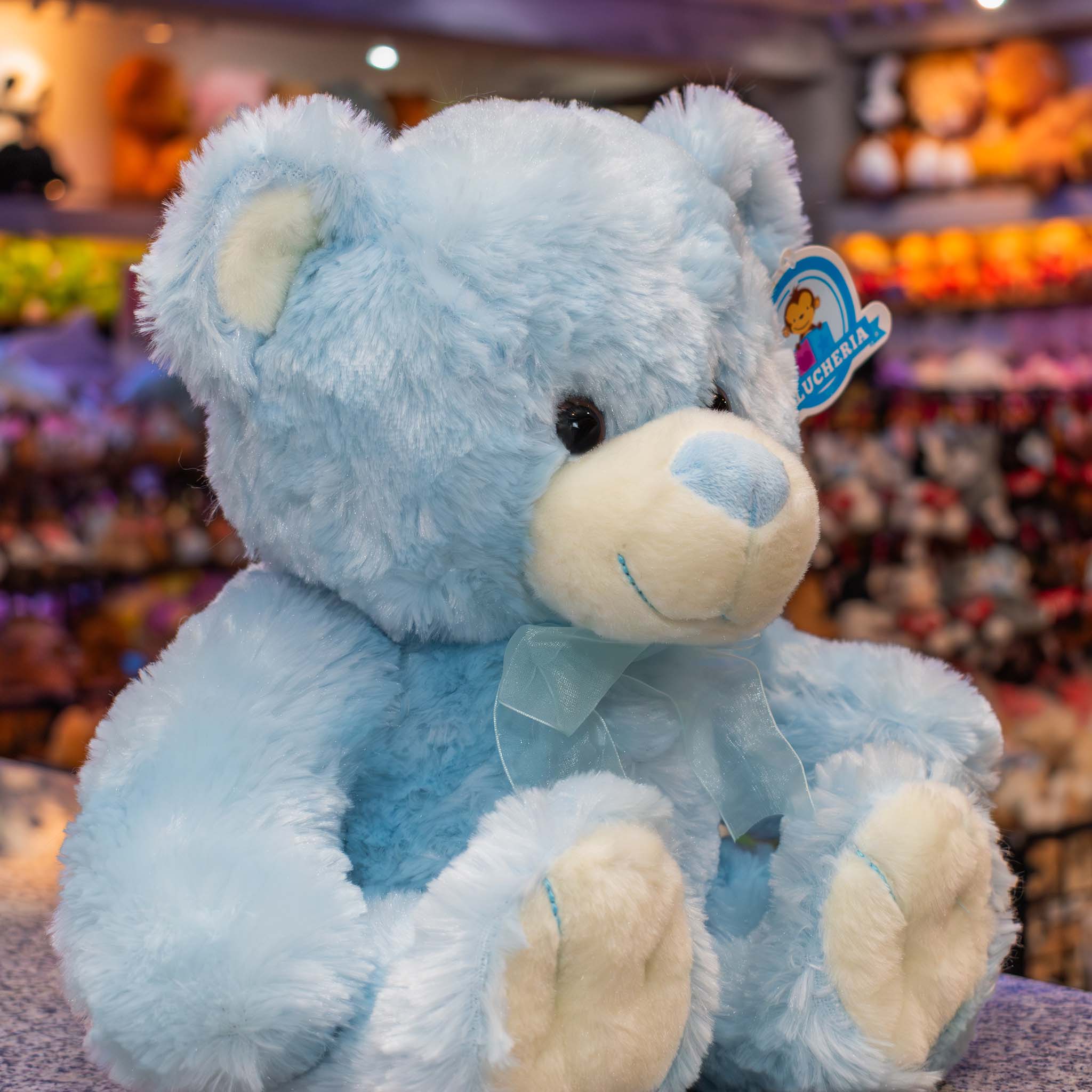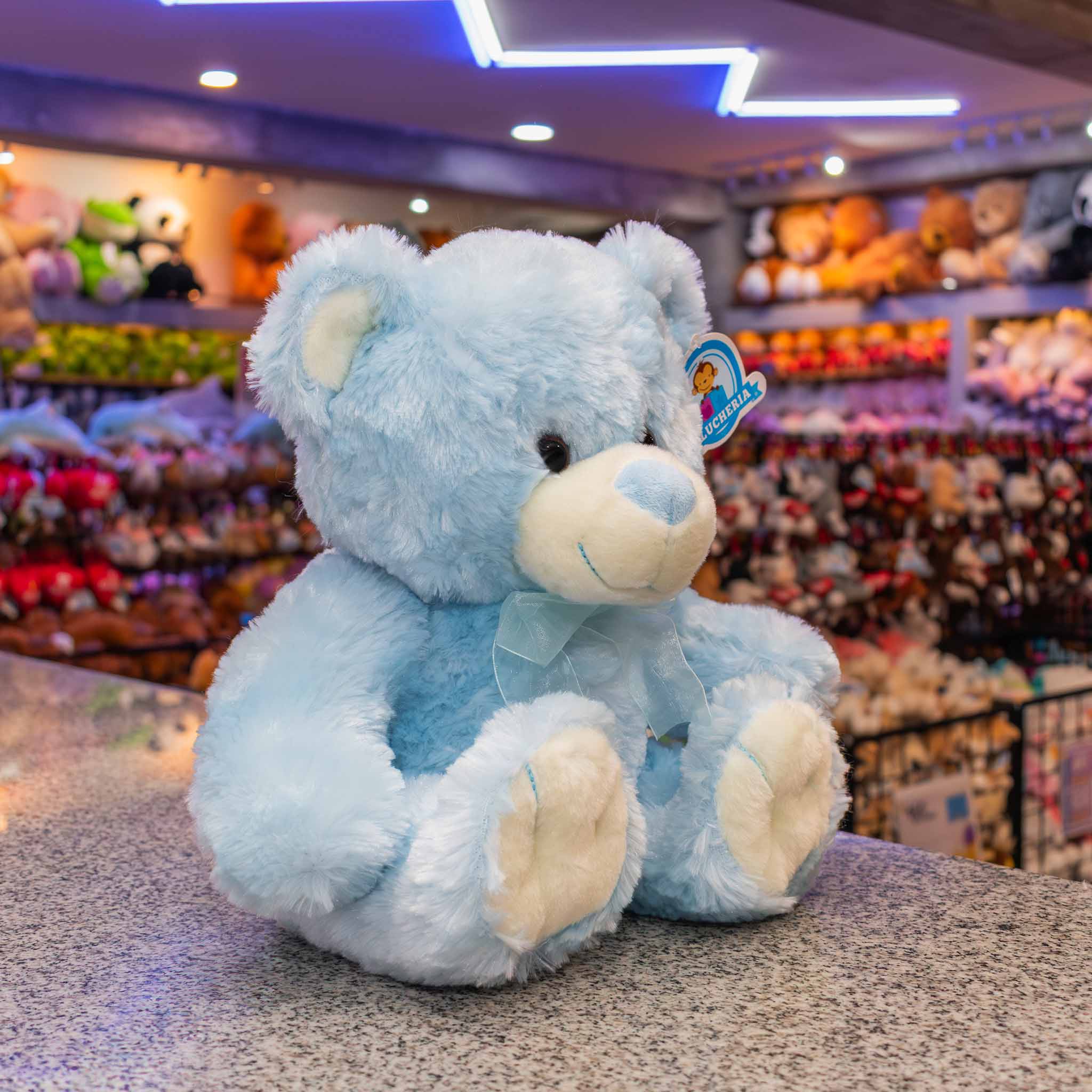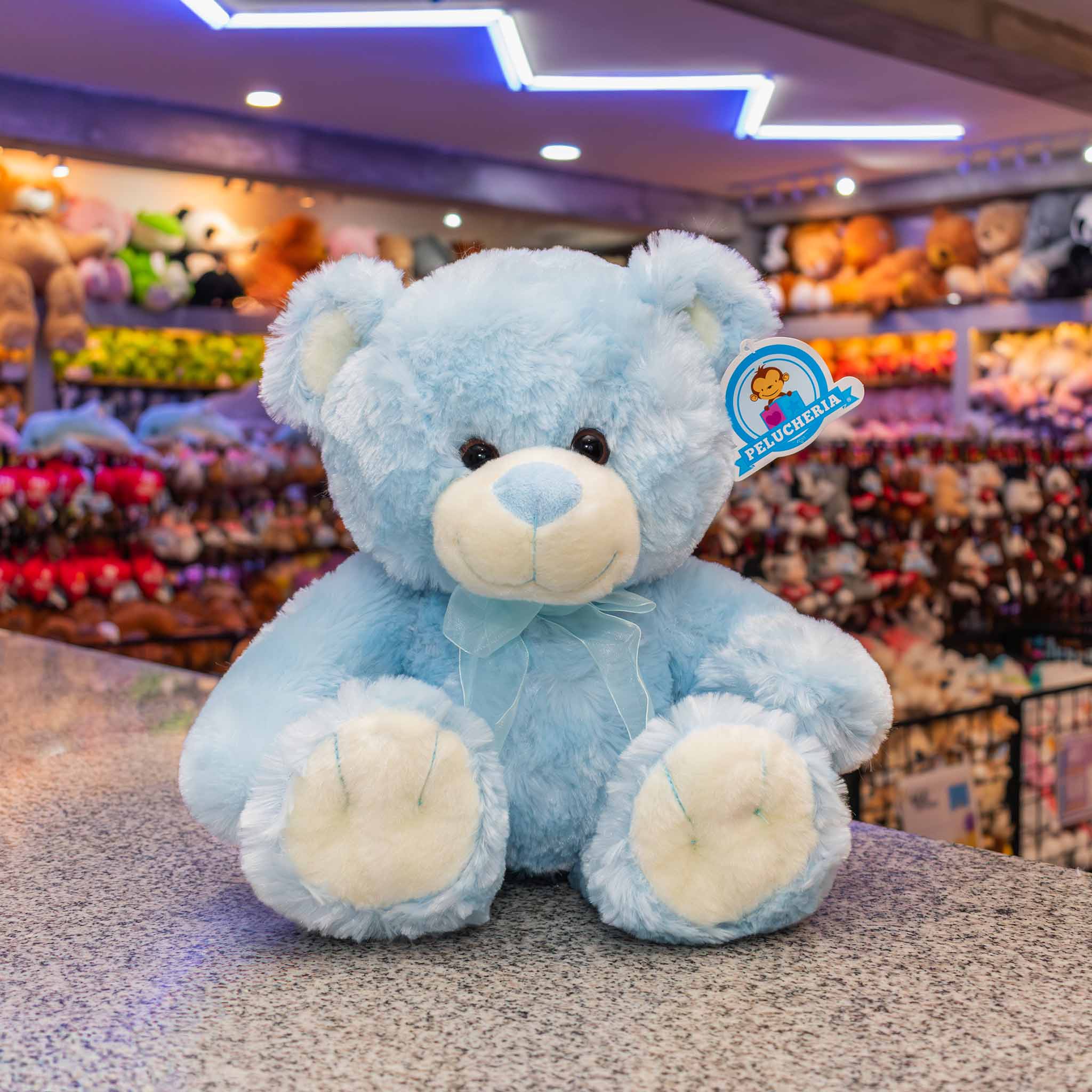 ¡Descubre nuestro adorable oso de peluche premium en color azul con un encantador moñito celeste! Este suave y tierno peluche es el regalo perfecto para expresar amor y cariño.