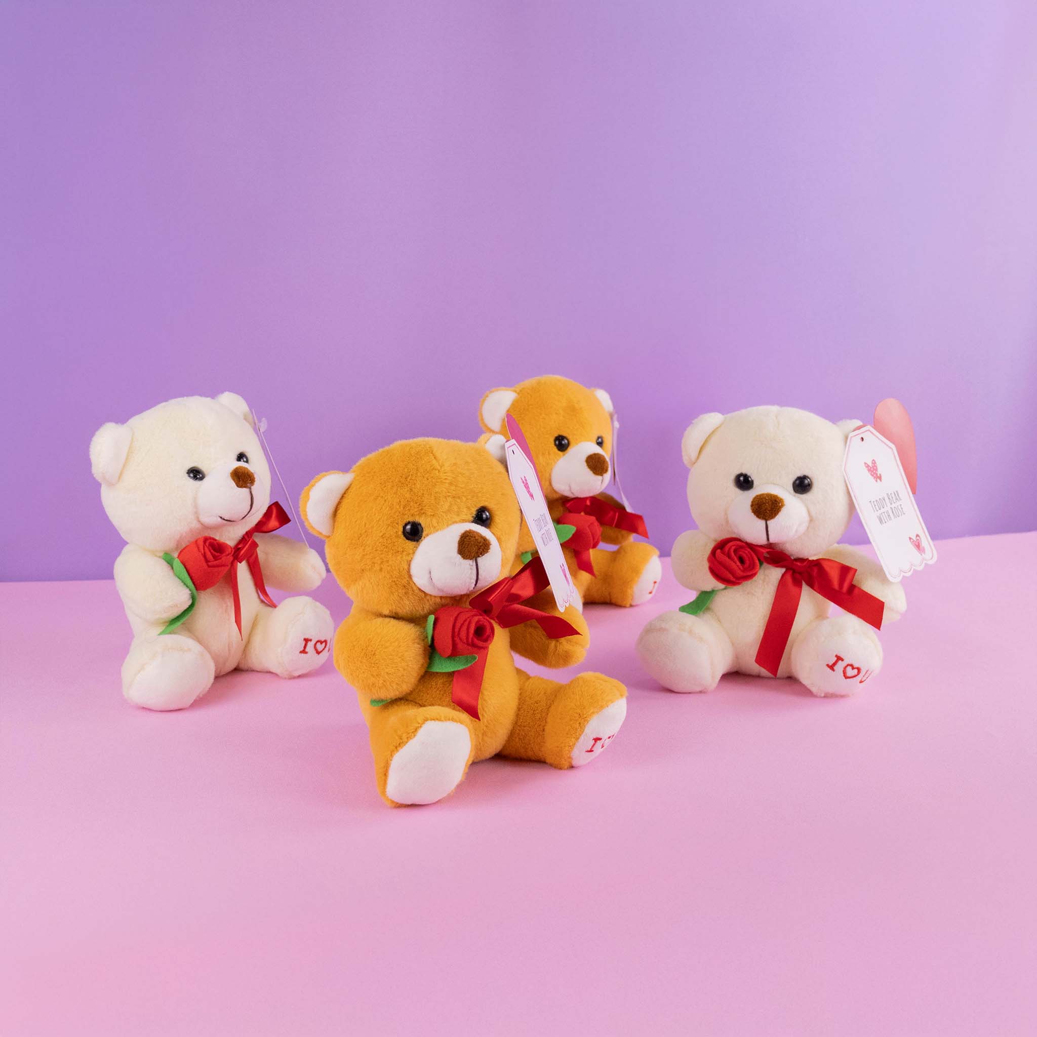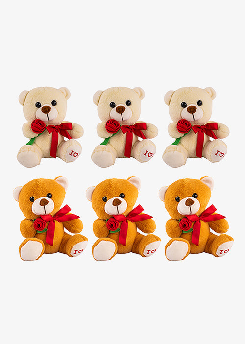 Set de 6 piezas Osos de peluche con flor 20 cm
